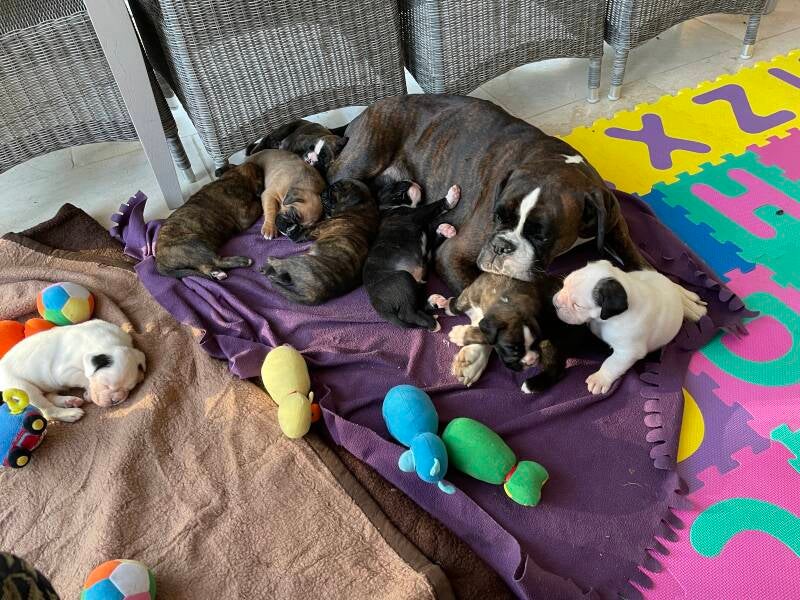 1 gele(bruine) teef(foto1) en 7 reu.